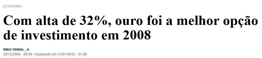 A história é prova disso. Em 2008, no meio da maior crise global deste século, o ouro valorizou 32,13%.