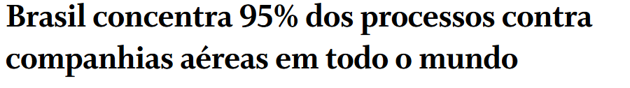 Um outro problema oculto que assola as aéreas é a alta judicialização no Brasil, como traz essa manchete de O Globo em setembro: