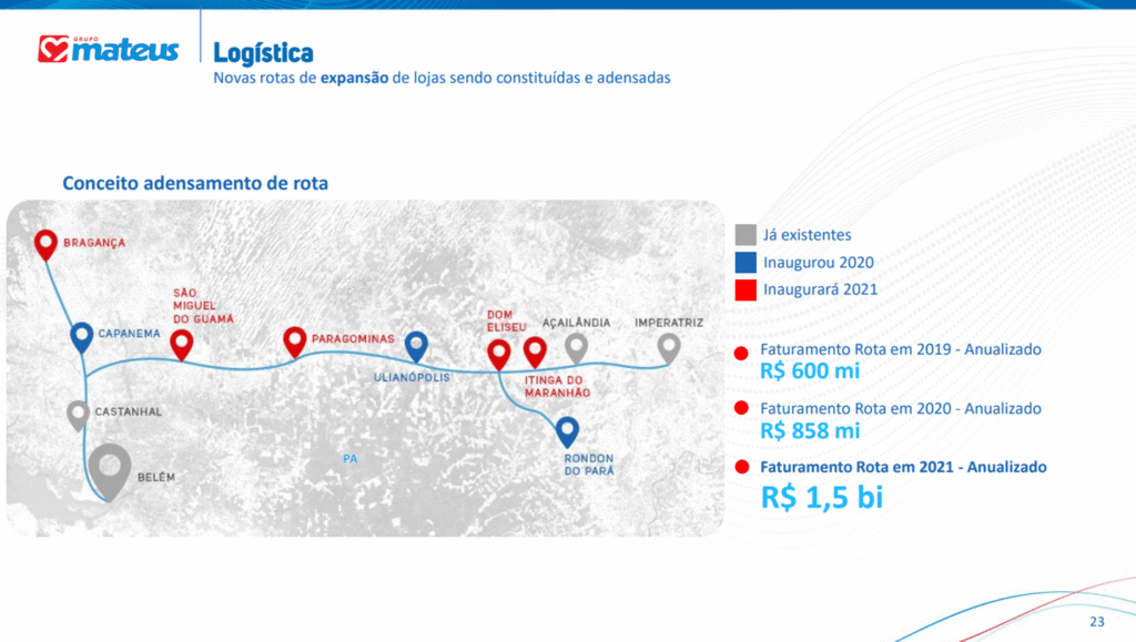Após o IPO, a companhia executou uma estratégia muito eficiente de adensamento de rotas, abrindo lojas em cidades já atendidas pelo atacado. Isso permitiu diluir custos logísticos e consolidar liderança no Maranhão e no Pará.