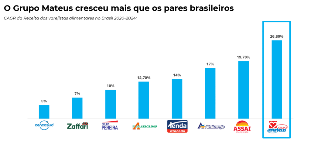 Nos últimos cinco anos, o Grupo Mateus foi a empresa que mais cresceu organicamente no varejo alimentar brasileiro entre aquelas com demonstrações financeiras disponíveis.