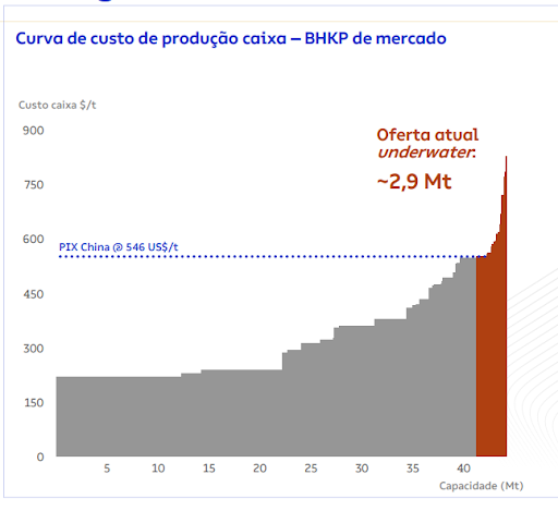 Mas os ciclos são parte do jogo das commodities. Quando os preços caem, os produtores de maior custo começam a sair: reduzem produção ou fecham fábricas e a oferta se ajusta. Hoje, o preço (PIX China a US$ 546/t) está abaixo do custo de produção de uma parcela relevante da indústria.