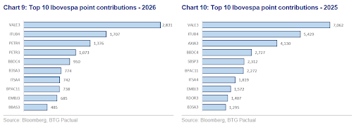 Esse fluxo gigante está entrando primeiro nas maiores e mais líquidas ações do Ibovespa: Vale, Petrobras, Itaú, B3, BTG Pactual, Bradesco, Banco do Brasil, e Embraer.