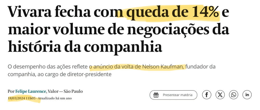 E aqui entra um ponto que eu falei no começo desta newsletter, sobre conhecer bem os fundamentos do que investe: só tivemos conforto de agir contra o mercado porque eu tenho um sócio que estudou Vivara de cabo a rabo.
